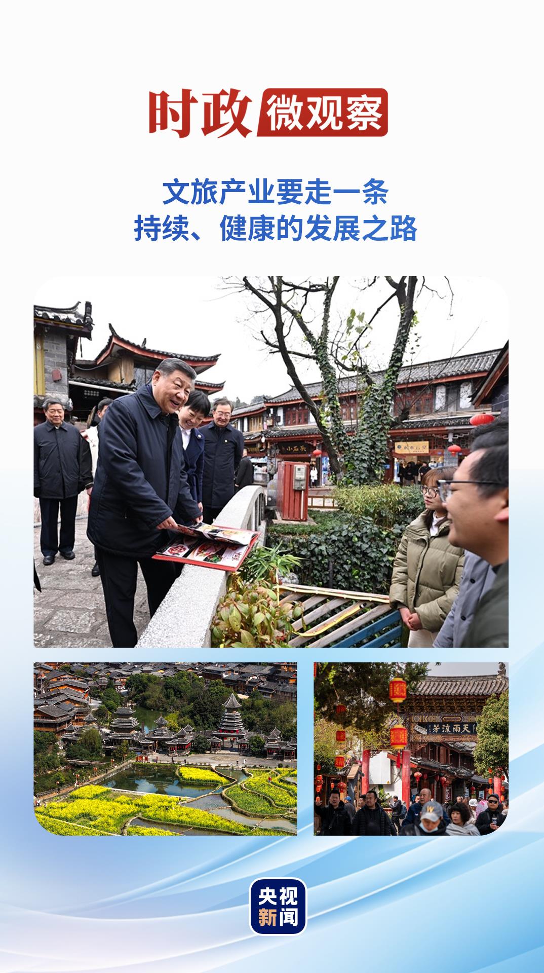 3月19日,習(xí)近平總書記來到這里,詳細(xì)了解古城營建歷史、納西族民居特色和當(dāng)?shù)匚幕z產(chǎn)保護(hù)利用、推動(dòng)文旅融合發(fā)展等情況?!斑@里的文化、風(fēng)光、民俗都非常吸引人,文旅融合促進(jìn)了經(jīng)濟(jì)發(fā)展。”