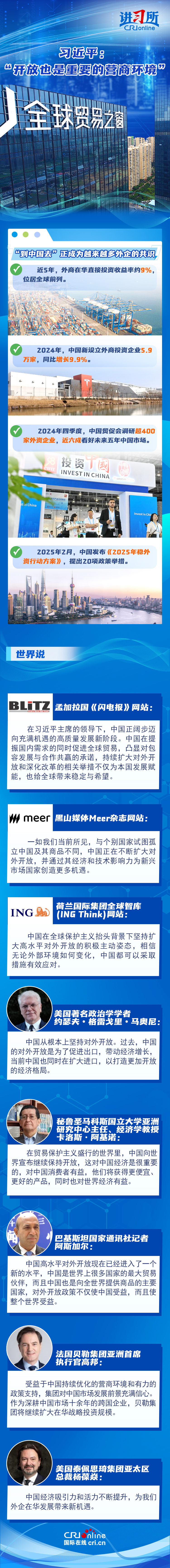 “中國開放的大門不會關(guān)閉,只會越開越大?!比ツ?2月,中國將“擴(kuò)大高水平對外開放,穩(wěn)外貿(mào)、穩(wěn)外資”列為今年政府重點任務(wù)。新年以來,隨著政策紅利持續(xù)釋放,外資不斷用行動為中國投下“信心票”:德國光電行業(yè)巨頭蔡司宣布將在上海購地自建大中華區(qū)總部園區(qū),意大利百旺集團(tuán)亞洲總部暨新工廠在蘇州高新區(qū)開業(yè),日本豐田汽車決定在華獨資設(shè)立雷克薩斯純電動汽車及電池的研發(fā)和生產(chǎn)公司……在他們看來,中國持續(xù)優(yōu)化營商環(huán)境、擴(kuò)大高水平開放,經(jīng)濟(jì)吸引力和活力不斷提升,不僅為中國發(fā)展賦能,也給全球帶來穩(wěn)定與希望。