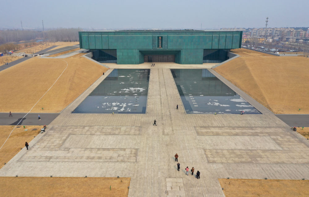 “商邑翼翼,四方之極?!蔽挥谔猩綎|麓的河南安陽(yáng)小屯村一帶,是殷墟遺址所在地。三千多年前,繁盛的城市文明、舉世矚目的文字文明以及高度發(fā)展的手工業(yè)等,共同構(gòu)筑了早期中國(guó)的華彩篇章。2024年2月,殷墟博物館新館正式開館,成為首個(gè)全景式展現(xiàn)商文明的國(guó)家重大考古專題博物館(2025年2月21日攝,無人機(jī)照片)。