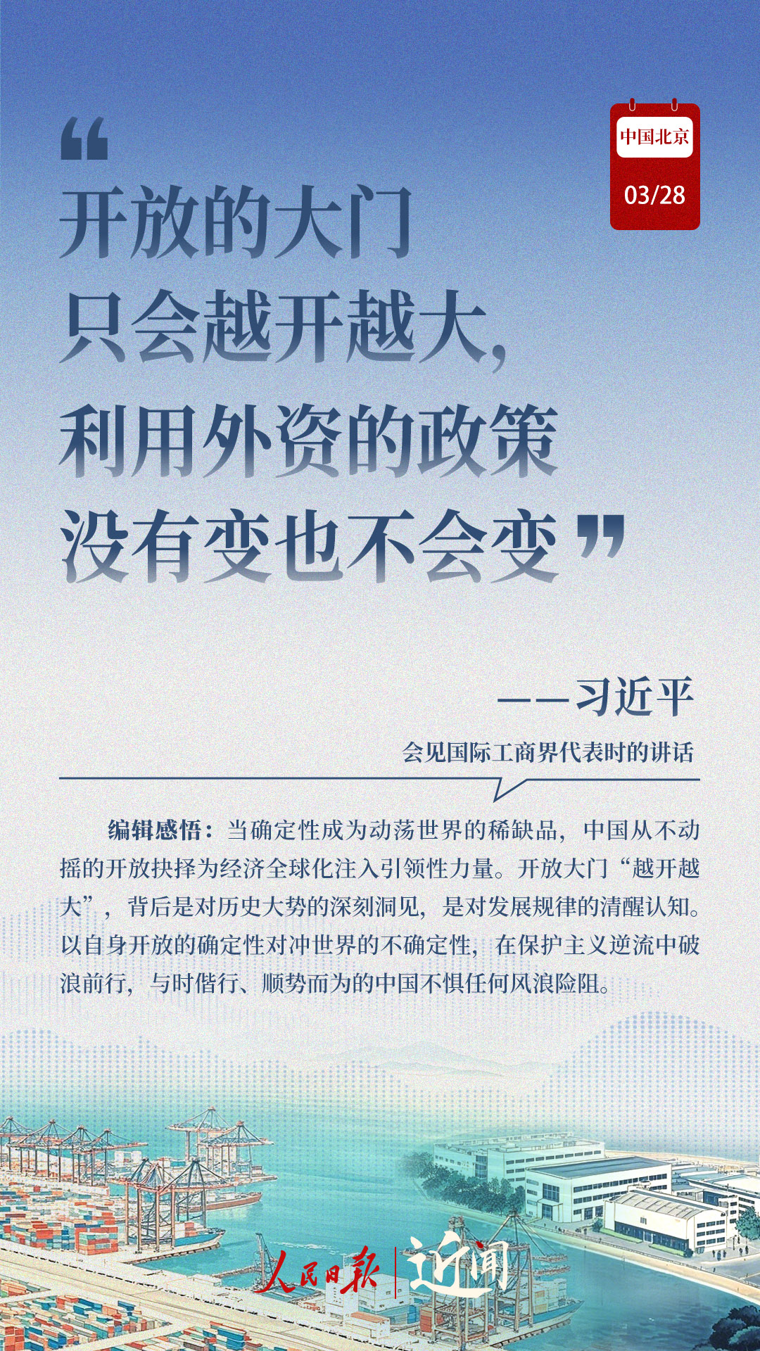 通過習(xí)主席的娓娓講述,信心在會場內(nèi)外傳遞。中國是“確定性的綠洲”,這一共識在外資企業(yè)中進(jìn)一步凝聚。