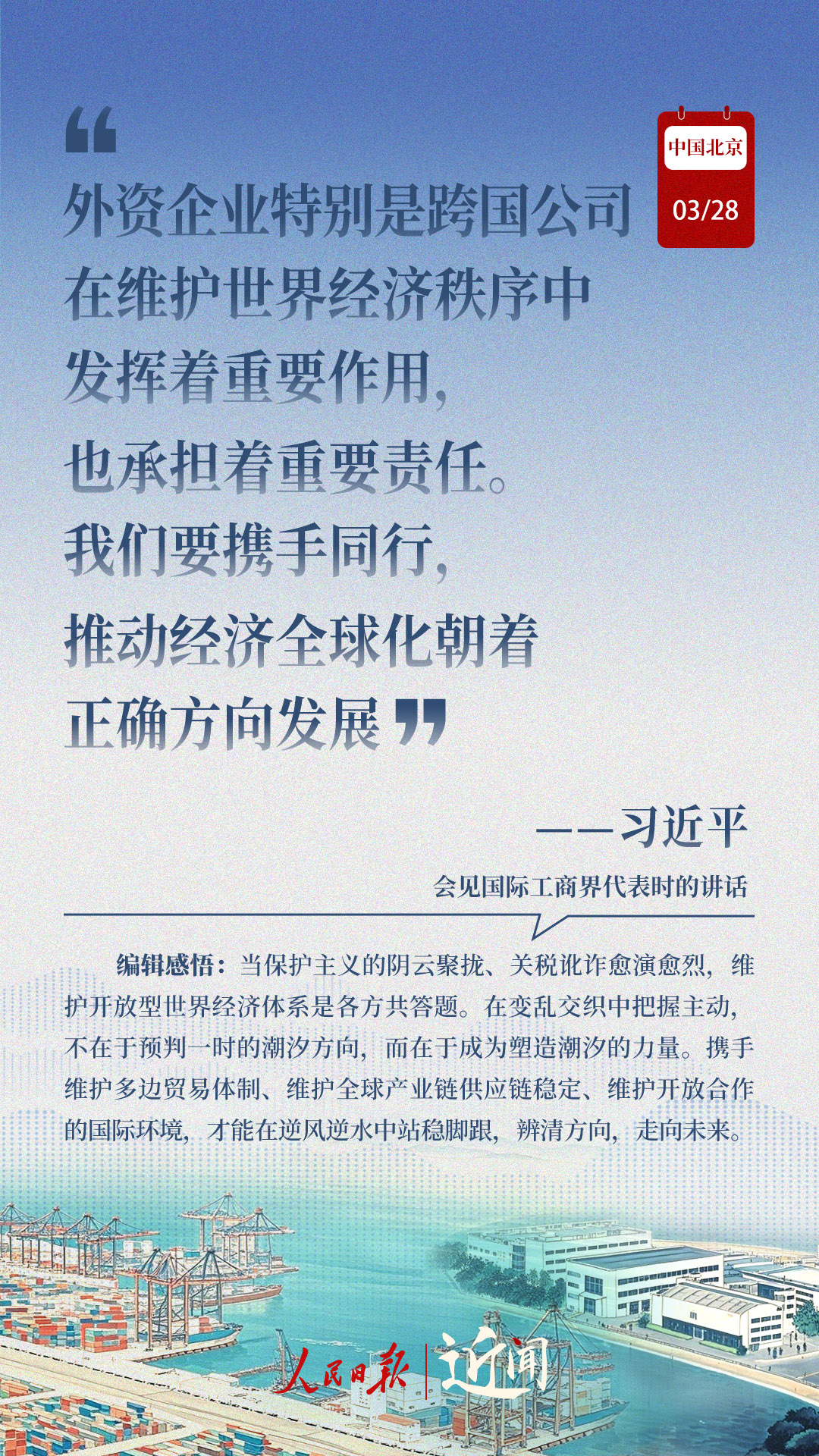 3月28日上午,北京人民大會堂,習(xí)近平主席與40余位外資企業(yè)全球董事長、首席執(zhí)行官和商協(xié)會代表齊聚一堂。