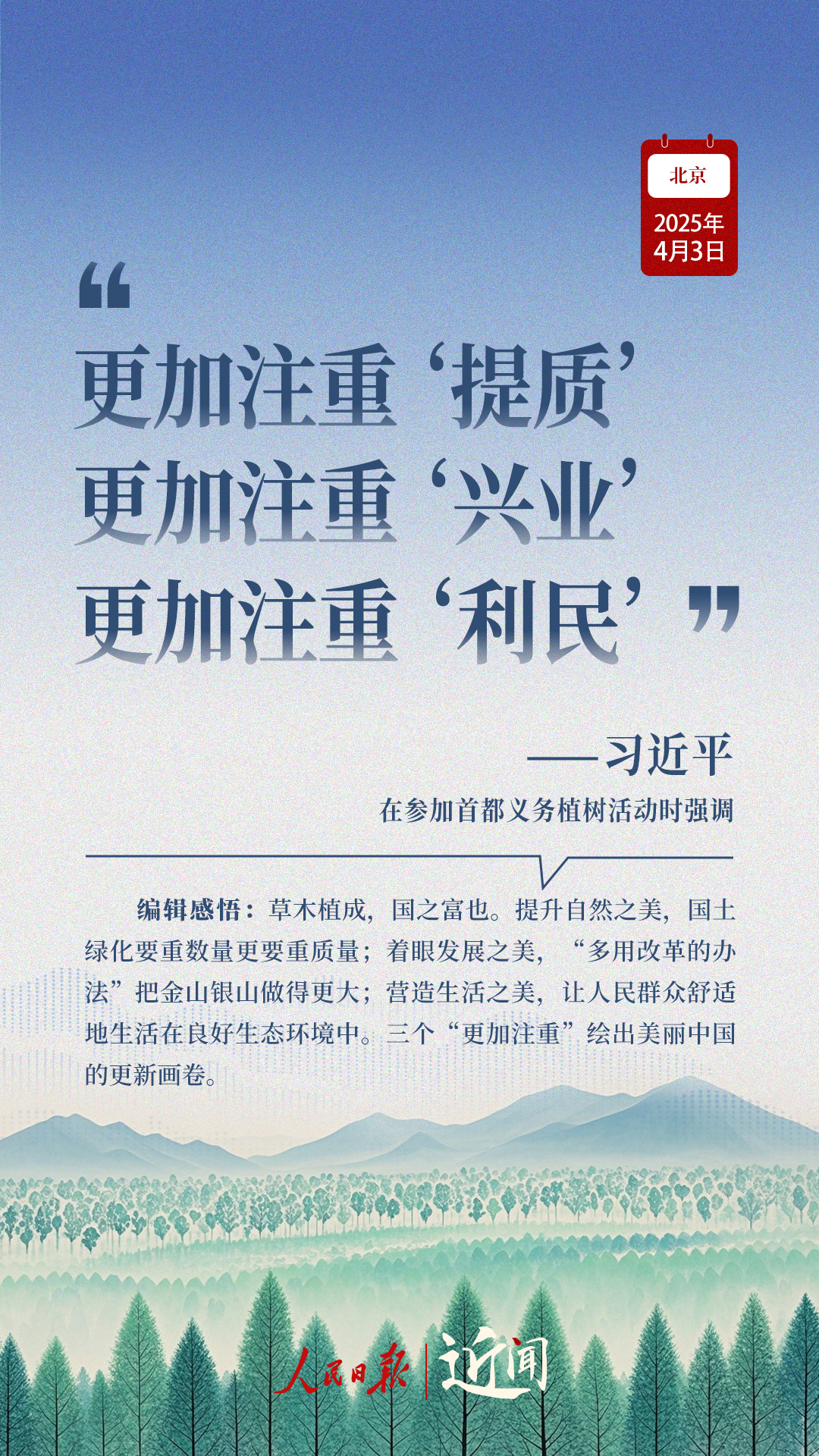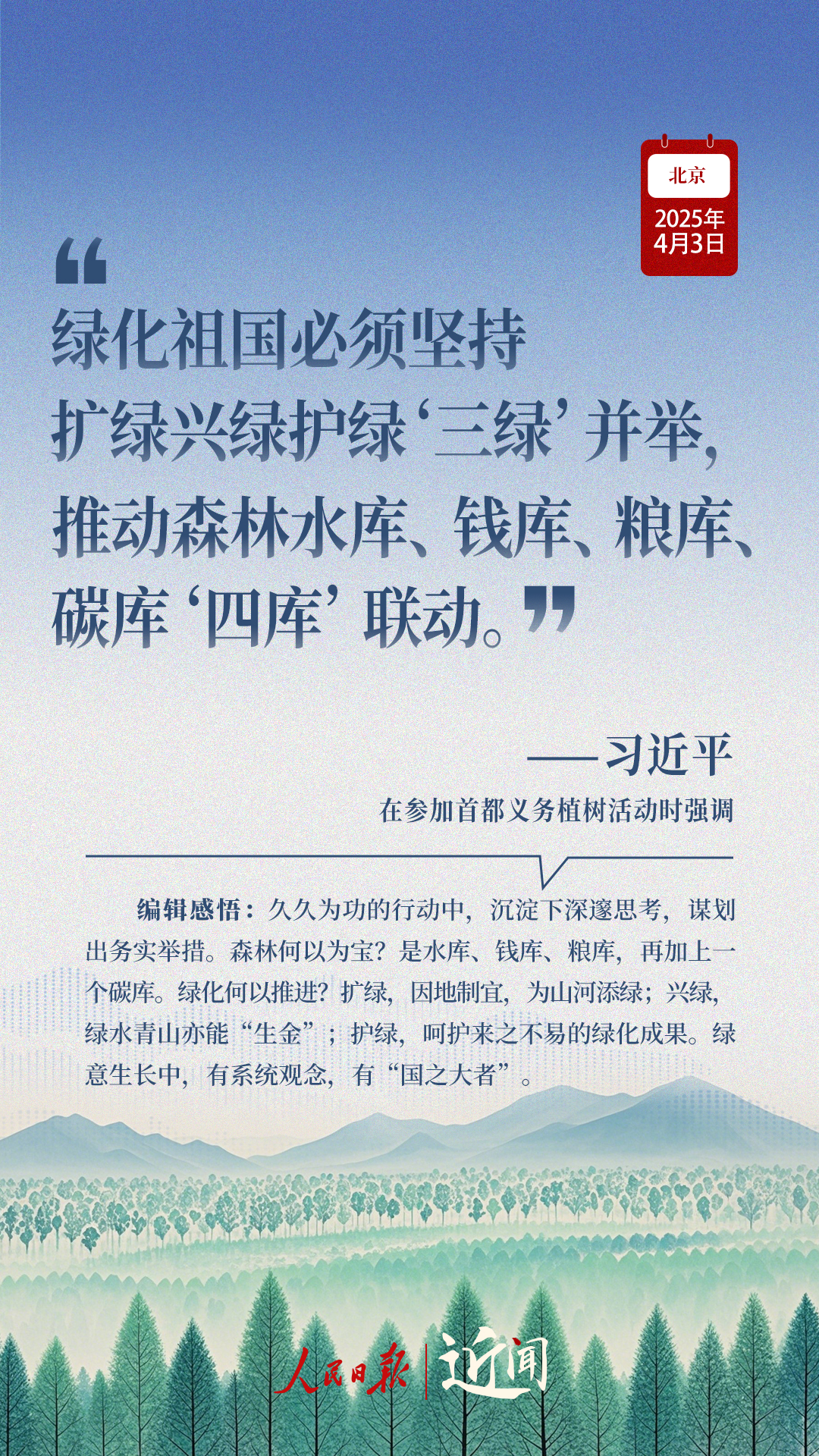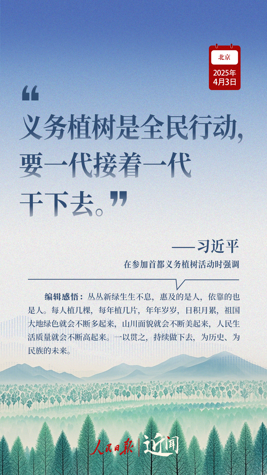 “生態(tài)環(huán)境持續(xù)改善,人民群眾感受最直接最真切。”“義務(wù)植樹是全民行動,要一代接著一代干下去?!痹谥矘洮F(xiàn)場,從這些話語讀懂一份堅持、一種情懷。