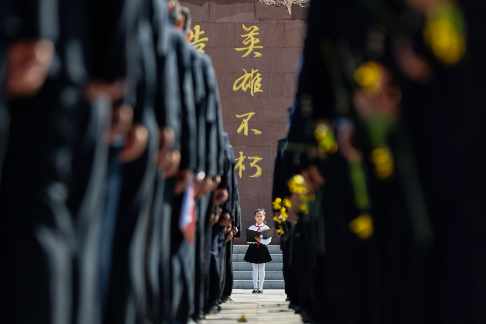 2025年4月2日,清明將至,人們在天津市濱海新區(qū)塘沽烈士陵園緬懷先烈。