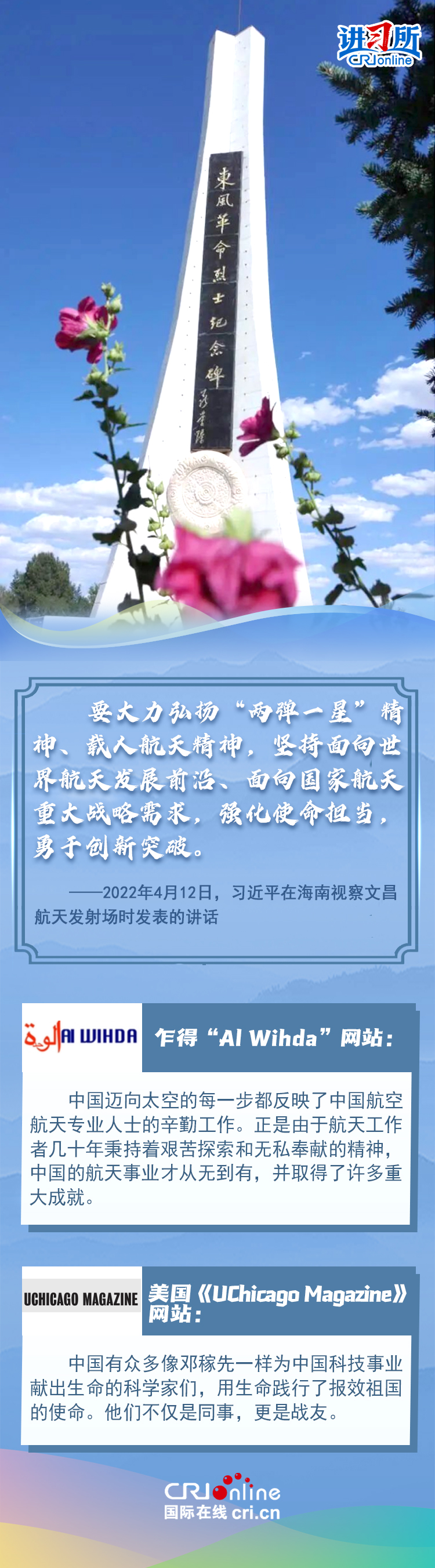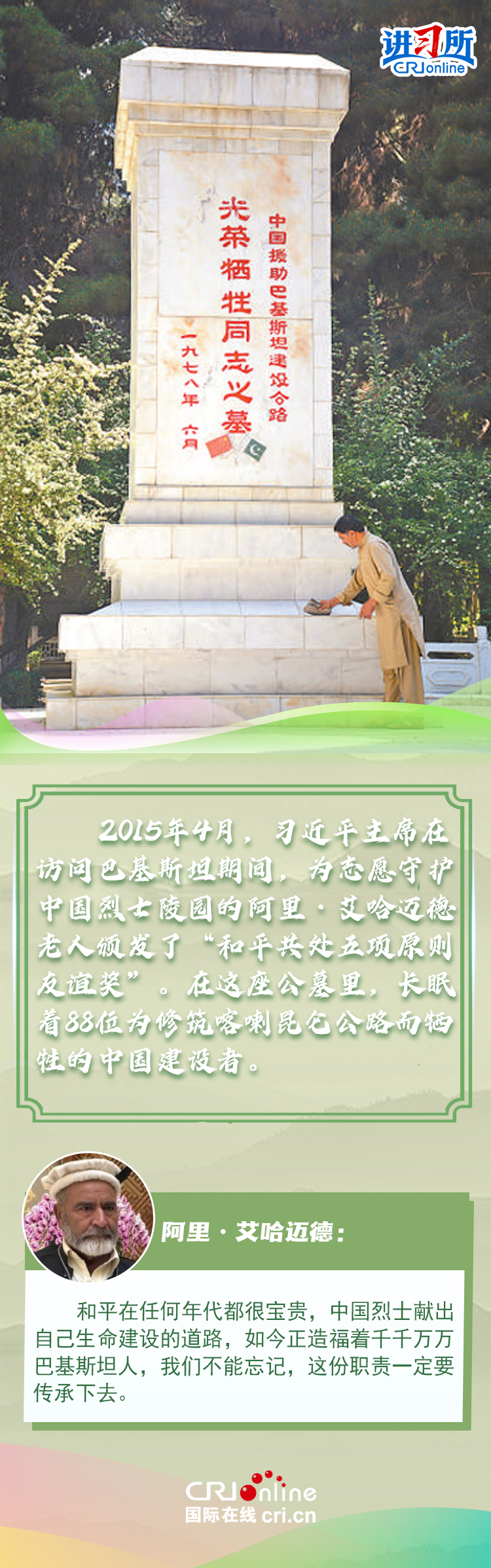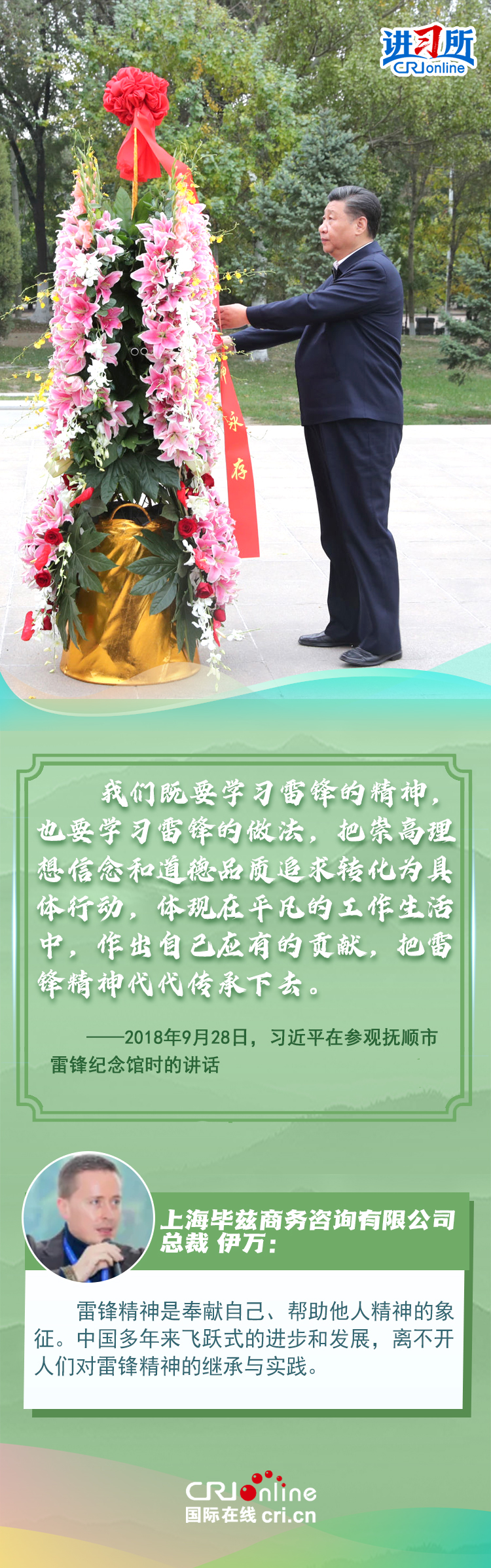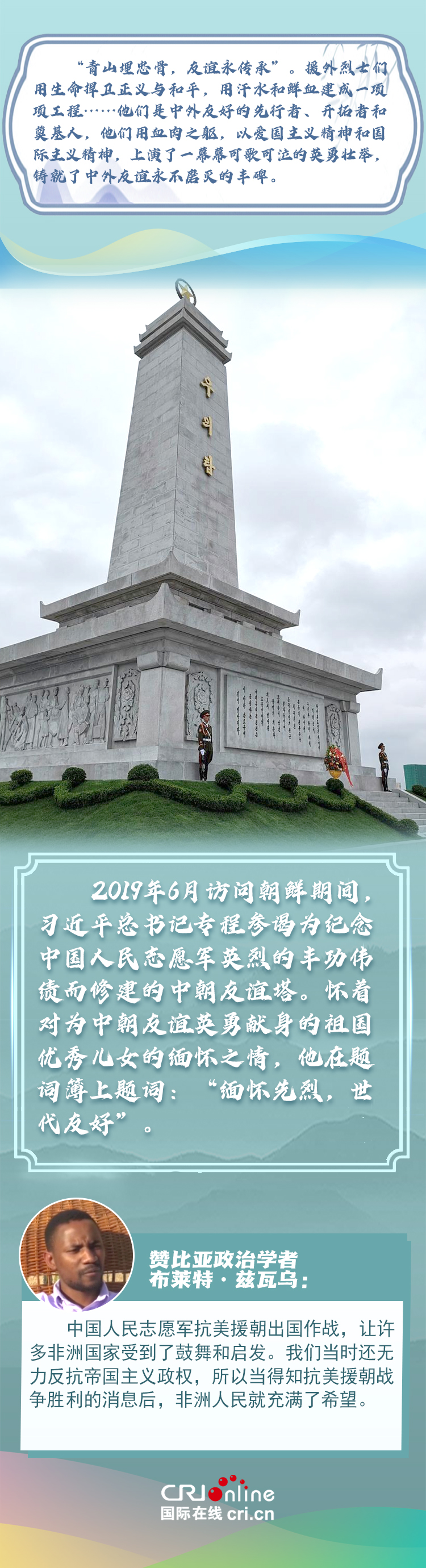 新時代以來,從設(shè)立烈士紀念日到出臺英雄烈士保護法,再到加強烈士紀念設(shè)施保護,中國崇尚英雄、學習英雄的社會風尚贏得國際社會贊譽。在國際人士眼中,中國多年來飛躍式的進步和發(fā)展,離不開人們對先輩意志的繼承與實踐。