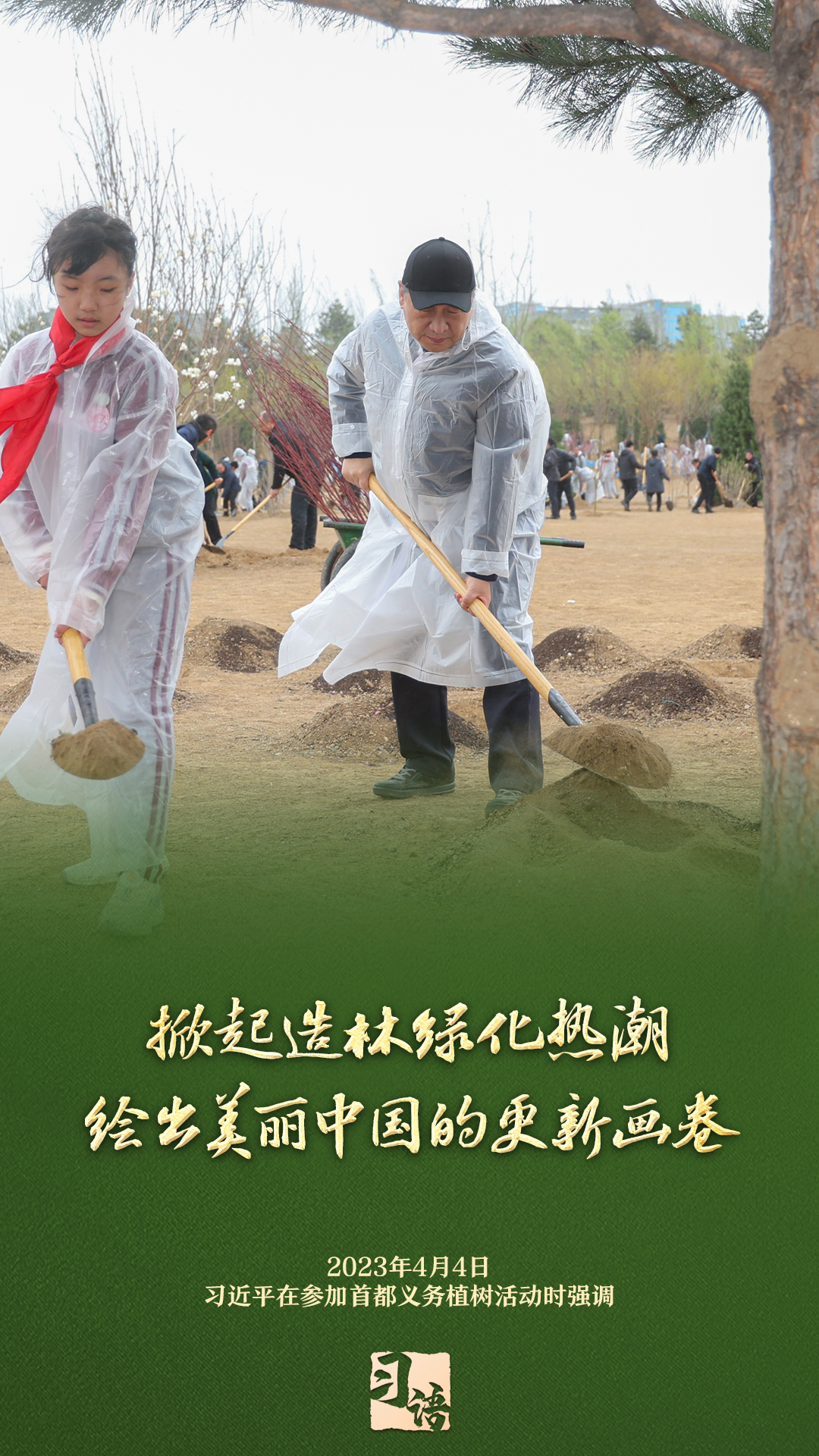“植樹造林是一件很有意義的事情,是一項功在當(dāng)代、利在千秋的崇高事業(yè),要一以貫之、持續(xù)做下去?!弊?013年以來的13個春天里,無論晴雨,習(xí)近平總書記都會拿起鐵鍬,與干部群眾一起參加首都義務(wù)植樹活動。鏟土造坑、培土圍堰、提水澆灌,總書記身體力行種下綠色的希望,對擴綠興綠護綠、建設(shè)美麗中國提出明確要求。一起學(xué)習(xí)。