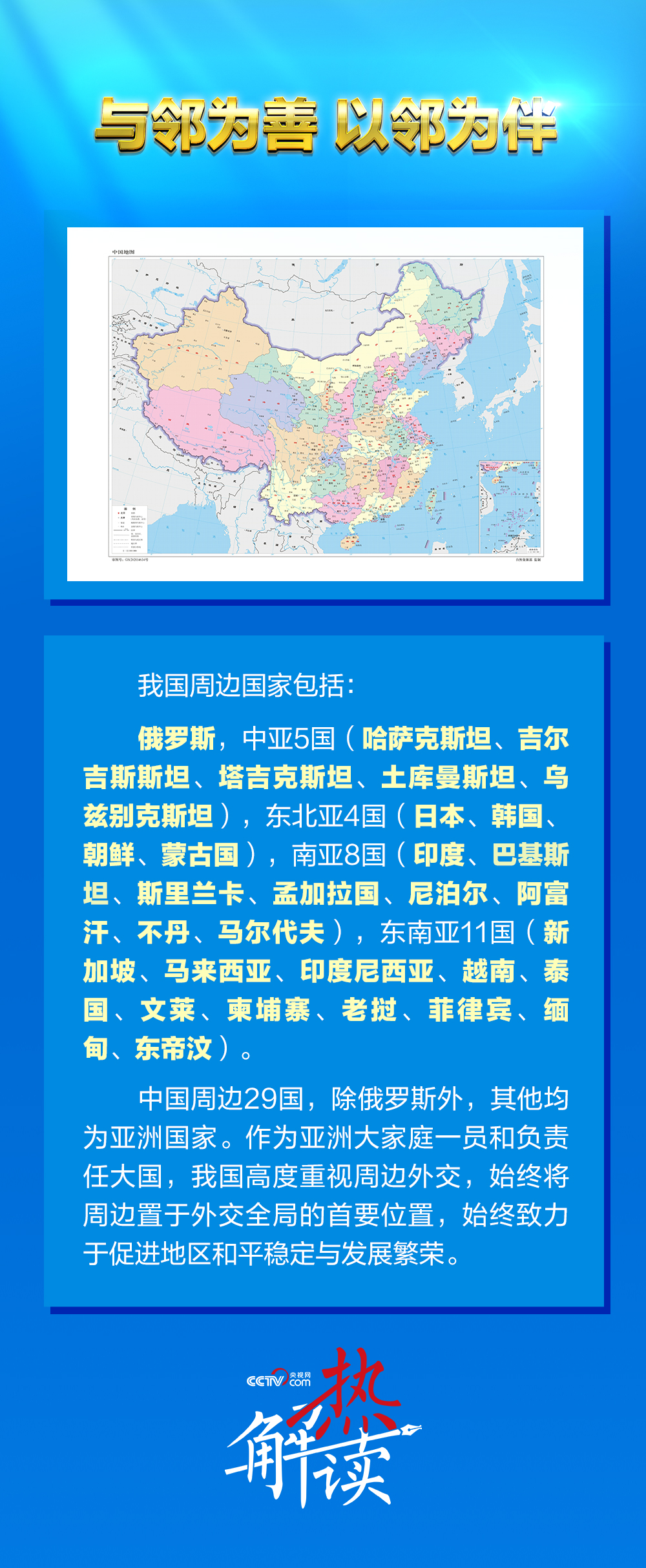 作為亞洲大家庭一員和負責任大國,中國高度重視周邊外交,始終將周邊置于外交全局的首要位置,視促進周邊和平、穩(wěn)定、發(fā)展為己任。