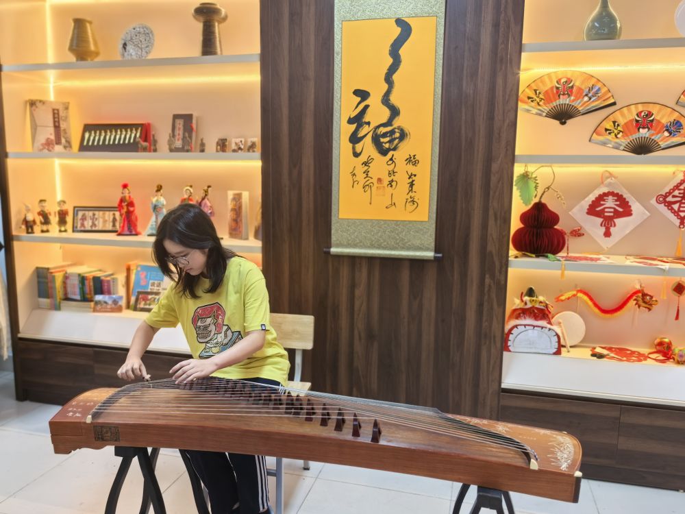 3月29日,越南河內(nèi)—阿姆斯特丹高中“越中文化室”正式啟用。該校高三學生阮霞英端用古箏彈奏《女兒情》。河內(nèi)中國文化中心供圖