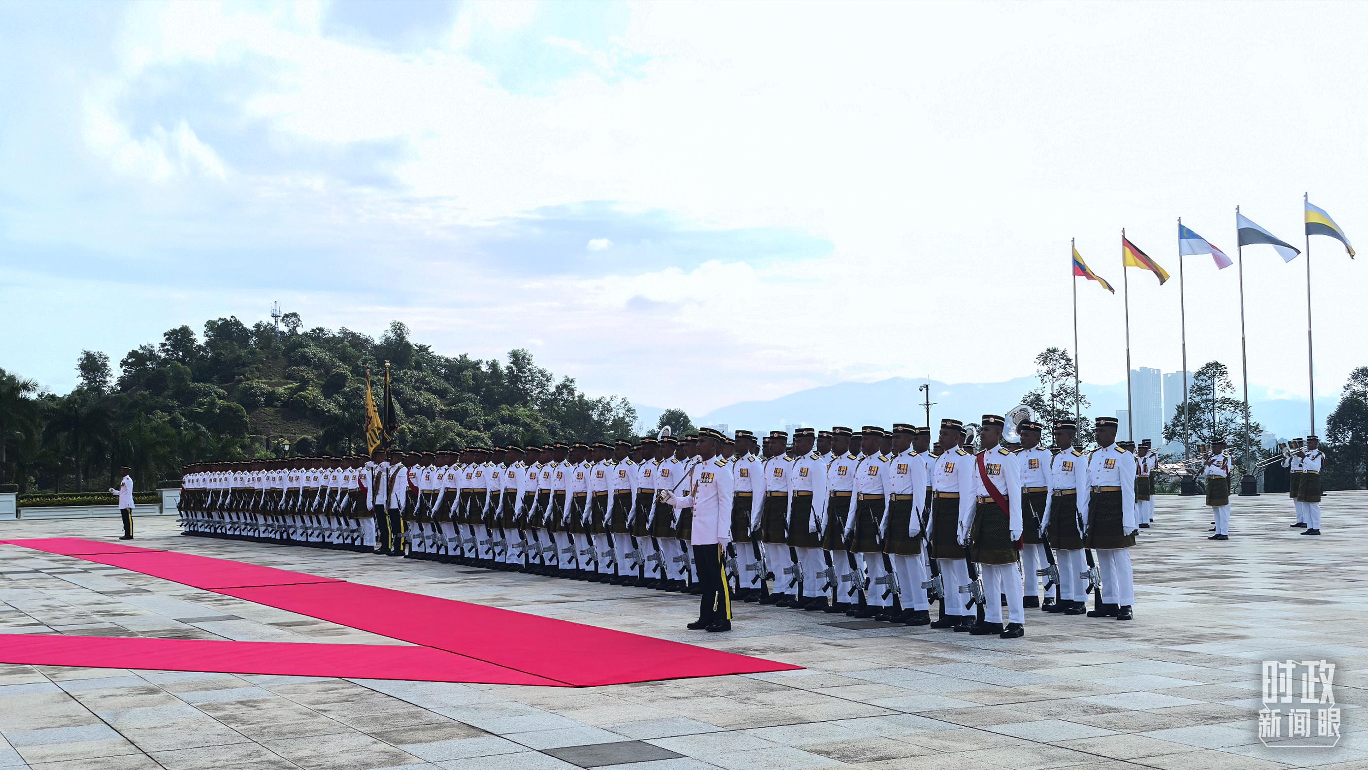 16日,馬來(lái)西亞最高元首易卜拉欣在國(guó)家王宮廣場(chǎng)為習(xí)主席舉行隆重歡迎儀式,隨后兩國(guó)元首舉行會(huì)見(jiàn)。安瓦爾總理全程陪同。