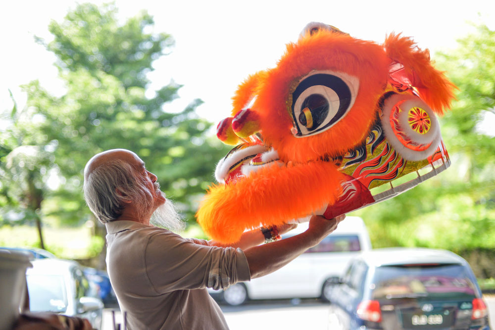 2018年2月1日,在馬來西亞雪蘭莪州沙阿蘭的梳邦濱吉蘭,蕭斐弘端起一個(gè)“獅頭”。蕭斐弘祖籍中國廣東潮州,因喜愛中華文化,從小練習(xí)舞獅,并成為一名制作獅頭的工匠。他帶領(lǐng)的獅隊(duì)屢屢在國際舞獅比賽中獲獎(jiǎng),成功將馬來西亞的舞獅隊(duì)伍推向國際舞臺(tái)。