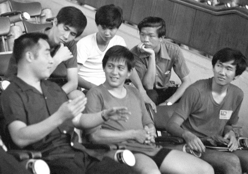 1973年,中國乒乓球代表團(tuán)應(yīng)馬來西亞乒乓球總會(huì)的邀請(qǐng),對(duì)馬來西亞進(jìn)行了友好訪問,受到馬來西亞人民的熱烈歡迎。這是1973年6月11日,中國乒乓球代表團(tuán)團(tuán)長莊則棟(左一)同馬來西亞乒乓球運(yùn)動(dòng)員一起交流球技。