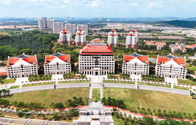 馬來(lái)西亞雪蘭莪州的廈門(mén)大學(xué)馬來(lái)西亞分校教學(xué)樓全貌。廈門(mén)大學(xué)馬來(lái)西亞分校供圖(新華社發(fā))