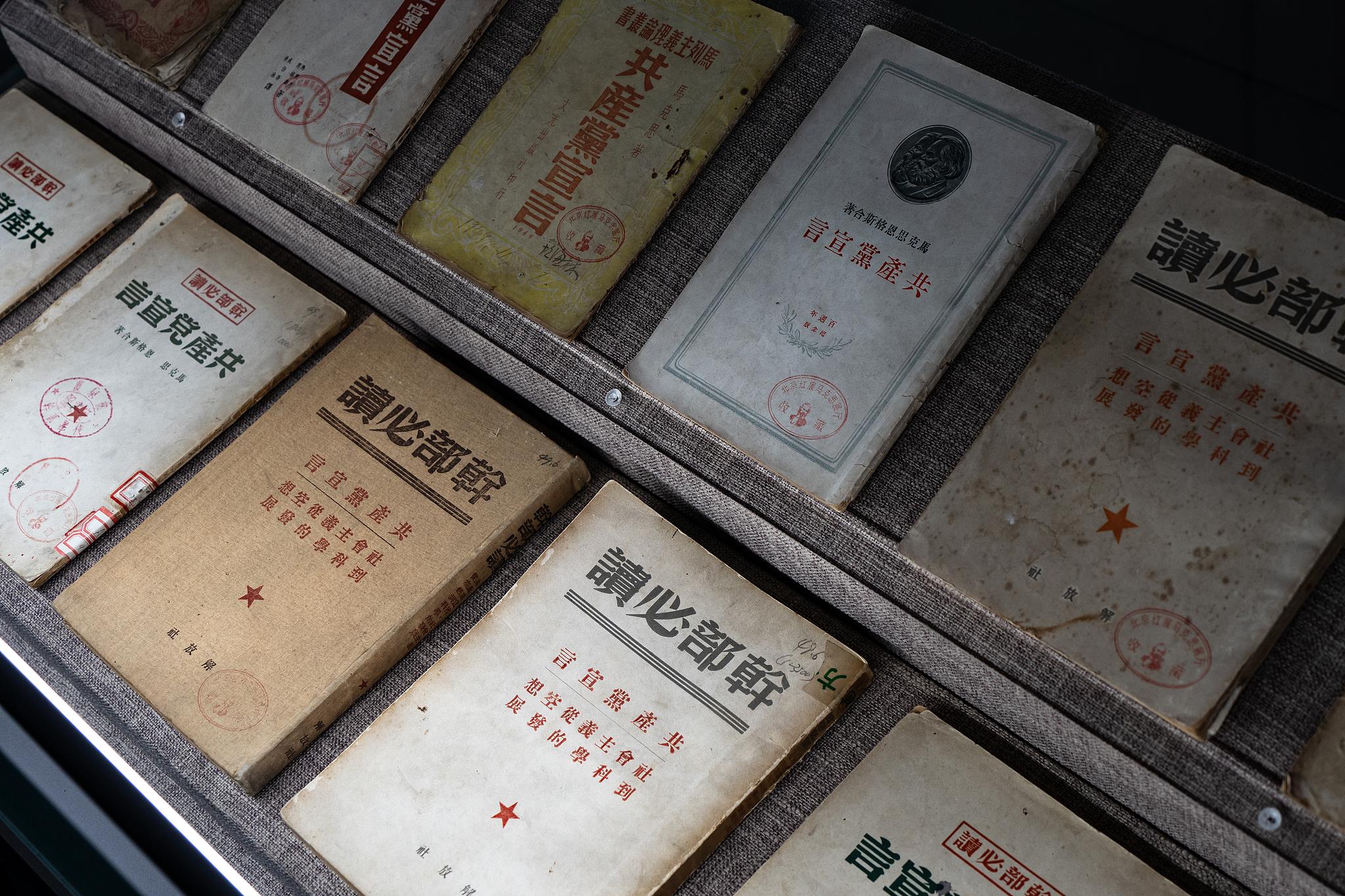 △中共一大會址紀念館館藏的各種版本的《共產(chǎn)黨宣言》