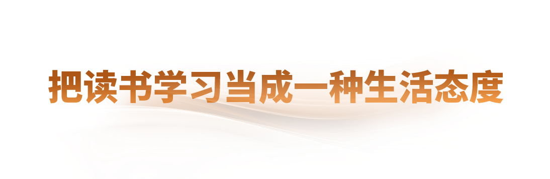 習(xí)近平總書記要求,“要力戒浮躁,多用一些時間靜心讀書、靜心思考,主動加快知識更新、優(yōu)化知識結(jié)構(gòu),使自己任何時候才不枯、智不竭”“要發(fā)揚‘擠’和‘鉆’的精神,多讀書、讀好書,從書本中汲取智慧和營養(yǎng)”。