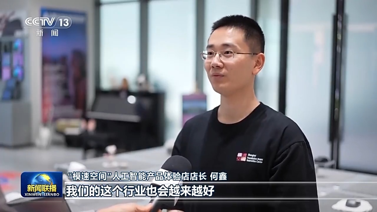 在“模速空間”3層,總書(shū)記參與青年創(chuàng)新人才的主題沙龍,同大家親切交流??倳?shū)記對(duì)大家說(shuō),人工智能是年輕的事業(yè),也是年輕人的事業(yè)。大家要把個(gè)人奮斗同國(guó)家前途命運(yùn)緊緊聯(lián)系在一起,在推進(jìn)中國(guó)式現(xiàn)代化的寬廣舞臺(tái)上綻放絢麗的青春光彩。