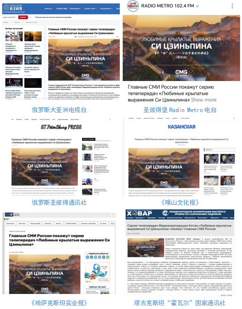 俄羅斯大亞洲電視臺、圣彼得堡Radio Metro電臺、俄羅斯圣彼得通訊社、《喀山文化報》《哈薩克斯坦實業(yè)報》、塔吉克斯坦“霍瓦爾”國家通訊社等亞歐地區(qū)多家主流媒體播發(fā)相關報道。