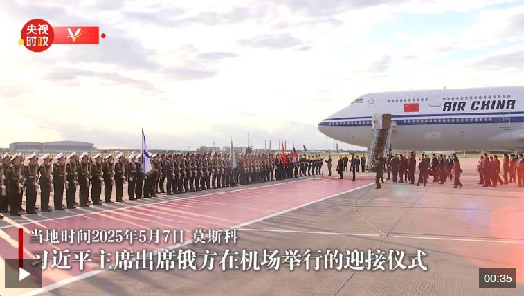 當?shù)貢r間5月7日晚,國家主席習近平乘專機抵達莫斯科,應俄羅斯總統(tǒng)普京邀請,對俄羅斯進行國事訪問并出席紀念蘇聯(lián)偉大衛(wèi)國戰(zhàn)爭勝利80周年慶典。