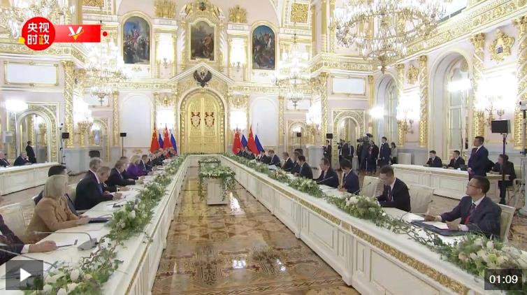 習近平強調,中國正在以中國式現代化全面推進強國建設、民族復興偉業(yè)。中方愿同俄方一道,承擔起時代賦予的特殊責任,維護全球多邊貿易體制和產業(yè)鏈供應鏈穩(wěn)定暢通,為促進兩國發(fā)展振興、維護國際公平正義作出更大貢獻。