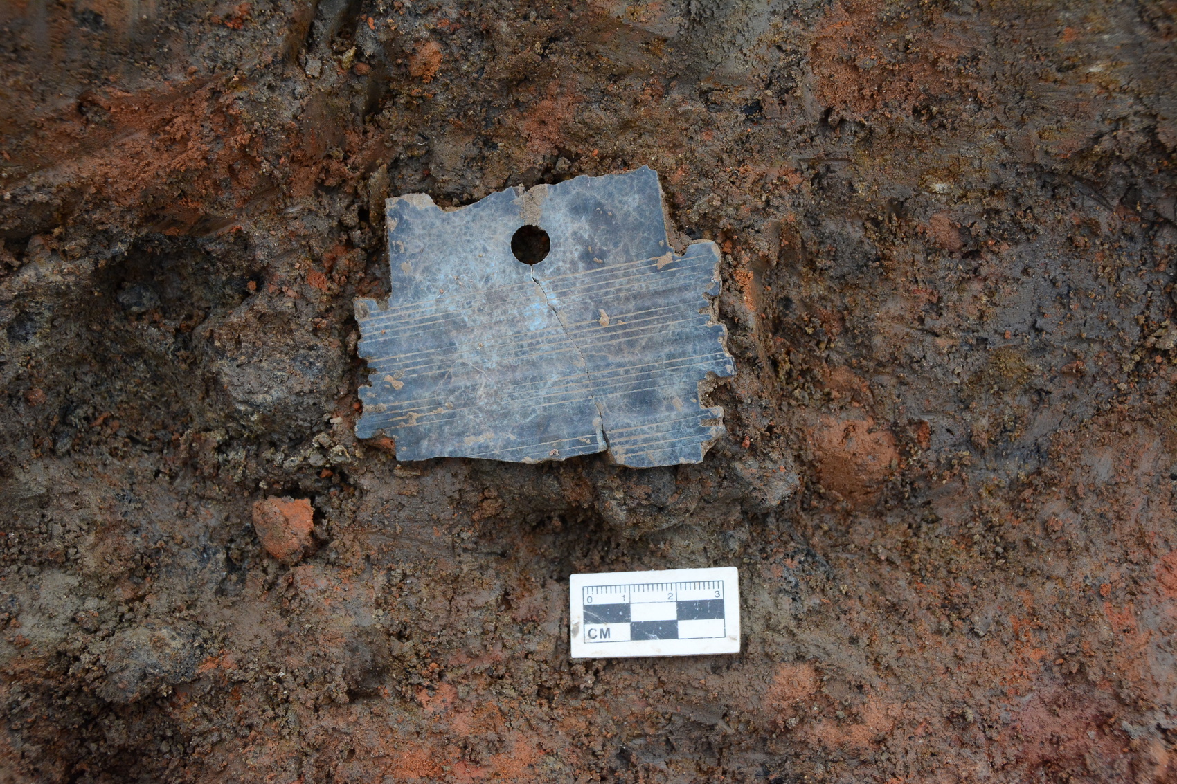 隨著工作的推進,考古人員又在月亮灣小城東南部的燕家院子地點發(fā)現(xiàn)了一處人工堆筑的土臺?!巴僚_面積超過6000平方米,采用了斜坡堆筑的建筑方式,與月亮灣小城東城墻等基本一致。”喬鋼介紹,尤其值得一提的是,燕家院子人工土臺初步判斷為多級土臺,最上層土臺上還發(fā)現(xiàn)了一處大型房屋建筑基址,面積超過200平方米,并且外圍可能存在回廊。這處建筑基址的最大單間,目前已揭露了90多平方米。房屋基槽內(nèi)的填充物則全是陶“板狀器”,可以看出大多經(jīng)過火燒、直立插入基槽,或許代表了木骨泥墻以外的砌墻工藝的出現(xiàn)。