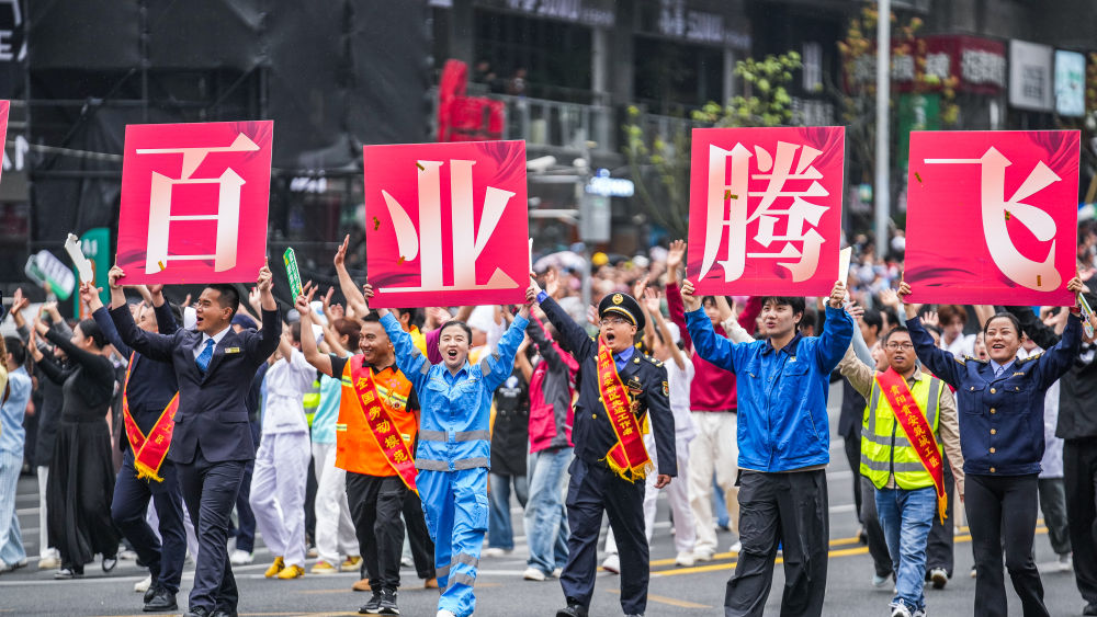 2025年5月18日,貴州民族團(tuán)結(jié)大巡游活動在貴州省貴陽市舉行。這是奮斗之光方陣的表演隊(duì)伍在進(jìn)行巡游。新華社記者 陶亮 攝