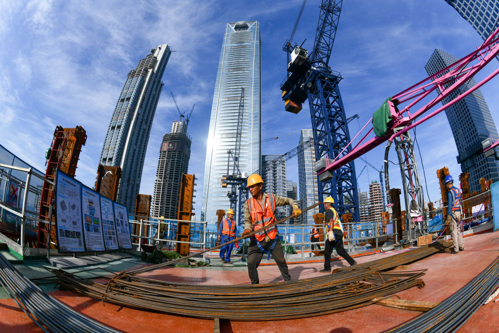 2024年10月3日,中建五局的建設(shè)者在深圳灣超級總部基地C塔項(xiàng)目建設(shè)現(xiàn)場施工。新華社記者 梁旭 攝