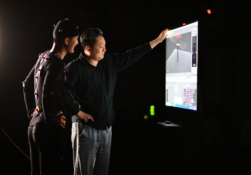 2024年4月23日,在位于天津市濱海新區(qū)國家動漫園里的大型動作捕捉棚內(nèi),技術(shù)顧問崔盛輯(右)和動捕演員馬鑫琪查看電腦生成的虛擬角色動作。人社部近年公布的新職業(yè)中,數(shù)字孿生應(yīng)用技術(shù)員名列其中。崔盛輯正是一名數(shù)字孿生應(yīng)用技術(shù)員。他從事數(shù)字技術(shù)相關(guān)工作多年,如今已成立了工作室,主要通過數(shù)字孿生技術(shù)搭建在影視動畫、沉浸式文旅、生命科學(xué)等領(lǐng)域的應(yīng)用場景。