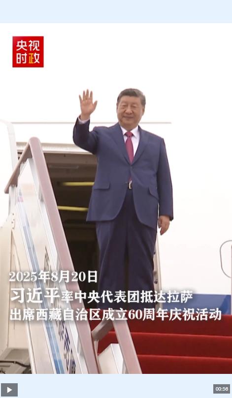 中共中央總書記、國家主席、中央軍委主席習近平率中央代表團20日中午乘專機抵達拉薩,出席西藏自治區(qū)成立60周年慶祝活動。