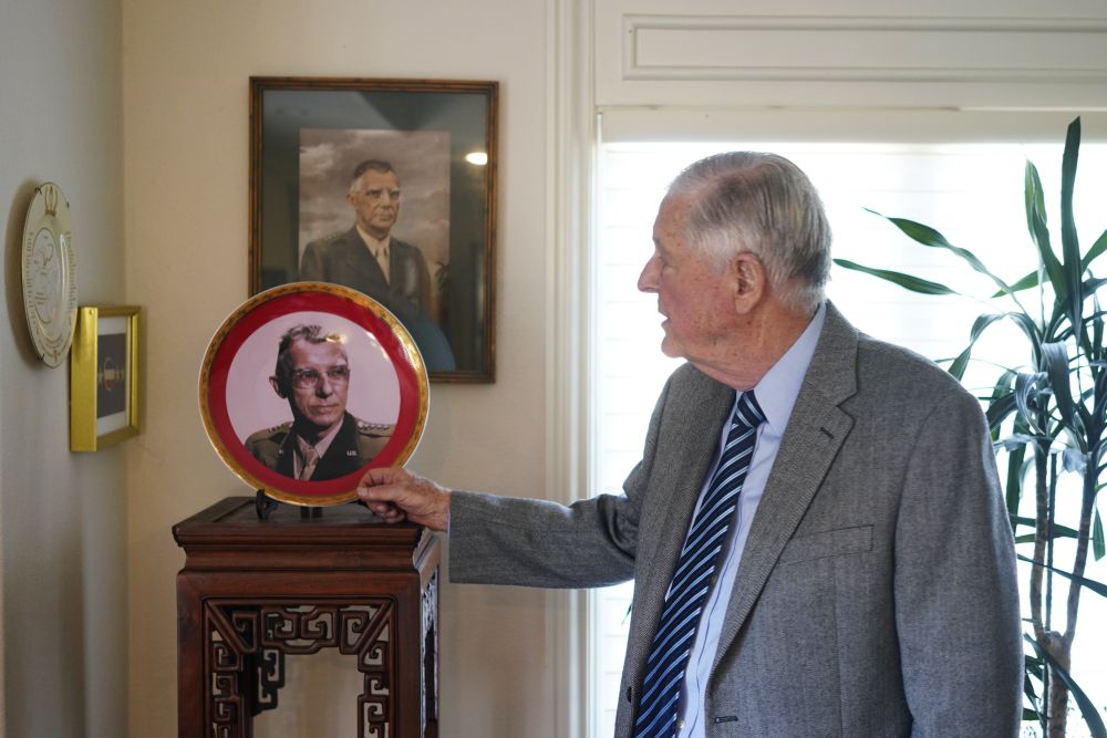 在位于美國舊金山灣區(qū)的家中,耄耋之年的伊斯特布魯克接受新華社記者專訪時,特意翻出了一張日本在“密蘇里”號戰(zhàn)列艦上簽署無條件投降書的老照片,用手指著照片中甲板上軍官站立的一側,“史迪威就在這里”。