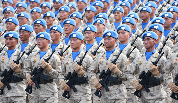 2025年9月3日,紀(jì)念中國人民抗日戰(zhàn)爭暨世界反法西斯戰(zhàn)爭勝利80周年大會在北京隆重舉行。這是維和部隊(duì)方隊(duì)接受檢閱。