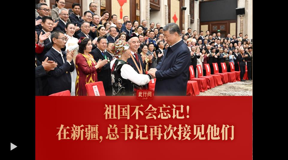 習(xí)近平23日下午接見新疆各族各界代表。代表中,我們發(fā)現(xiàn)了這4位,他們是“七一勛章”獲得者魏德友、“七一勛章”獲得者買買提江·吾買爾、“人民楷?!辈既悻敽埂っ斩?、“人民衛(wèi)士”巴依卡·凱力迪別克。習(xí)近平總書記微笑著同他們親切握手。