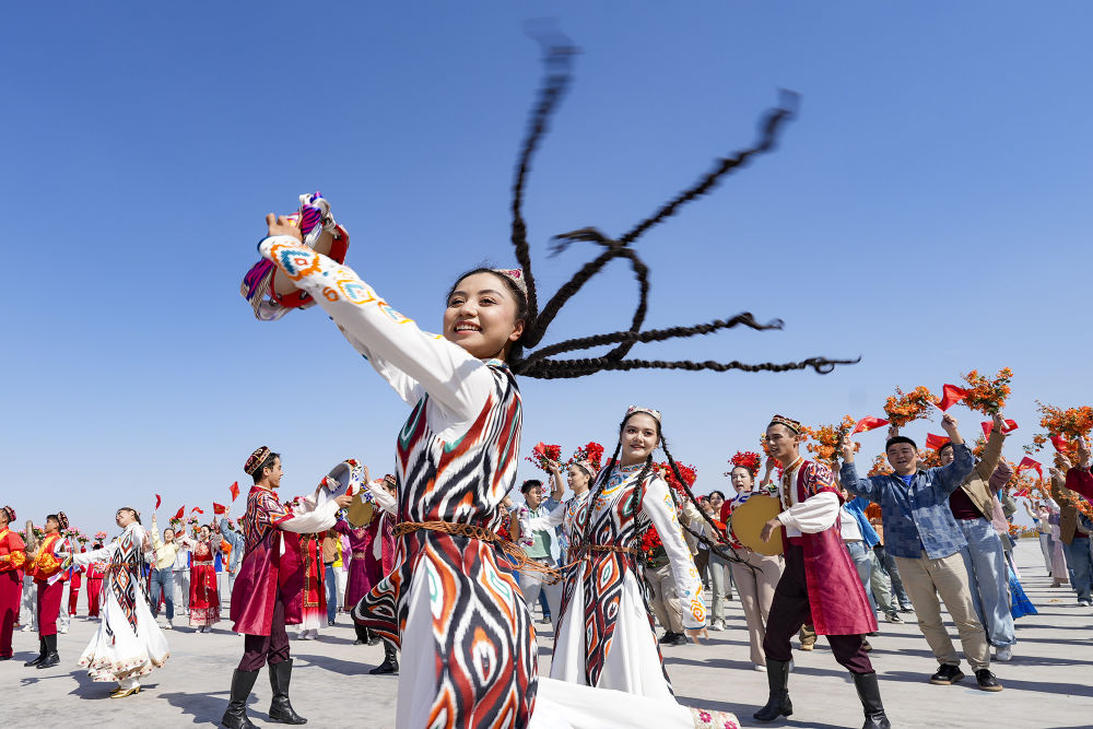 新華社記者的鏡頭里,各族兒女簇?fù)碓谝黄?,歡笑在一起;明艷的服飾、熱烈的歌舞,無不展現(xiàn)出團(tuán)結(jié)與奮進(jìn)的力量。