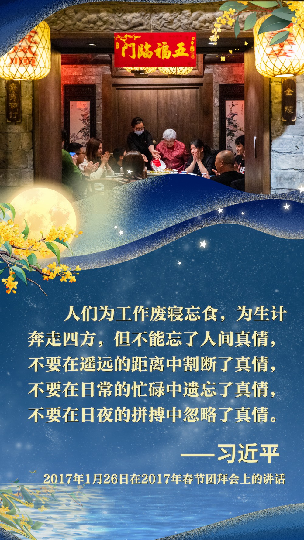 江山萬重,皓月千里??淘谥腥A兒女骨血里的家國情懷,讓每一次團聚都成為對美好生活的禮贊,讓每一份祝福都匯聚成民族奮進的磅礴力量。