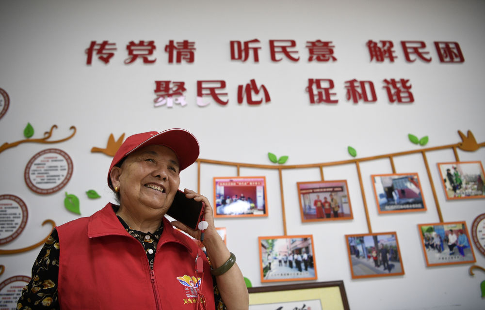 2005年,寧夏吳忠市回族婦女王蘭花從社區(qū)居委會主任崗位退休后,與6名老同事成立了“王蘭花熱心小組”。她帶領(lǐng)團隊二十年如一日堅持志愿服務,每天奔走在社區(qū)各個角落,照顧空巢老人、留守兒童,化解矛盾糾紛,幫助解決社區(qū)居民的操心事、煩心事、揪心事,用無私奉獻溫暖著每一個人的心田,成為社區(qū)志愿服務“領(lǐng)頭羊”,吸引越來越多的人加入志愿服務隊伍。這是2021年6月16日,王蘭花在社區(qū)工作站與居民通電話。