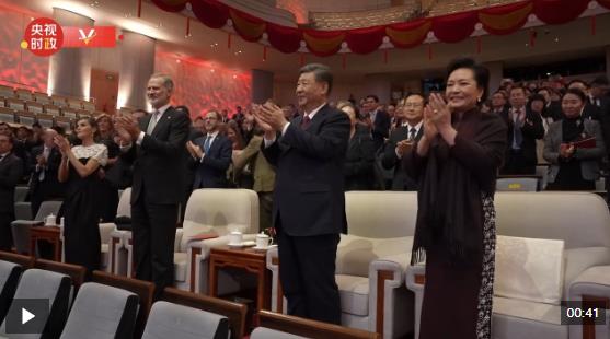11月12日晚,國家主席習近平和夫人彭麗媛在北京國家大劇院同西班牙國王費利佩六世夫婦一同觀看西班牙皇家劇院音樂會。