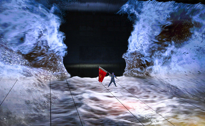 2025年11月15日,演員在貴州長征文化數字藝術館進行《紅飄帶·偉大遠征》全域行浸數字演藝。