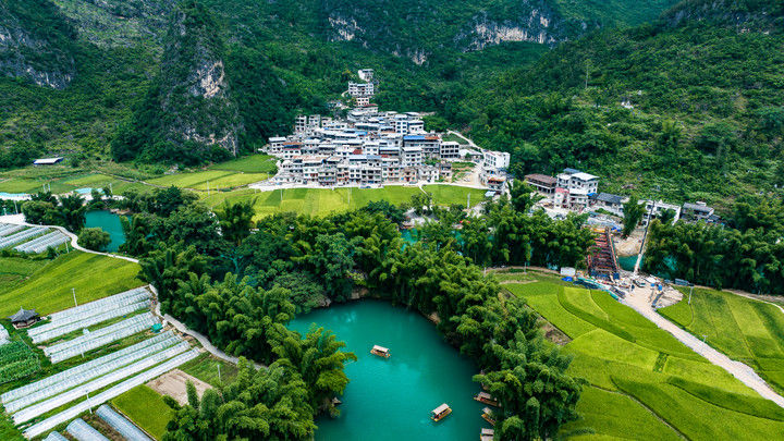 游客乘船游玩貴州省羅甸縣沫陽鎮(zhèn)大小井景區(qū)(2025年8月12日攝,無人機照片)。通過不斷升級基礎設施、優(yōu)化服務體系,羅甸縣以旅居康養(yǎng)為特色,將豐富的山水資源轉化為旅游優(yōu)勢,讓“享玩水 趣羅甸”成為夏日品牌,推動全域旅游高質量發(fā)展。