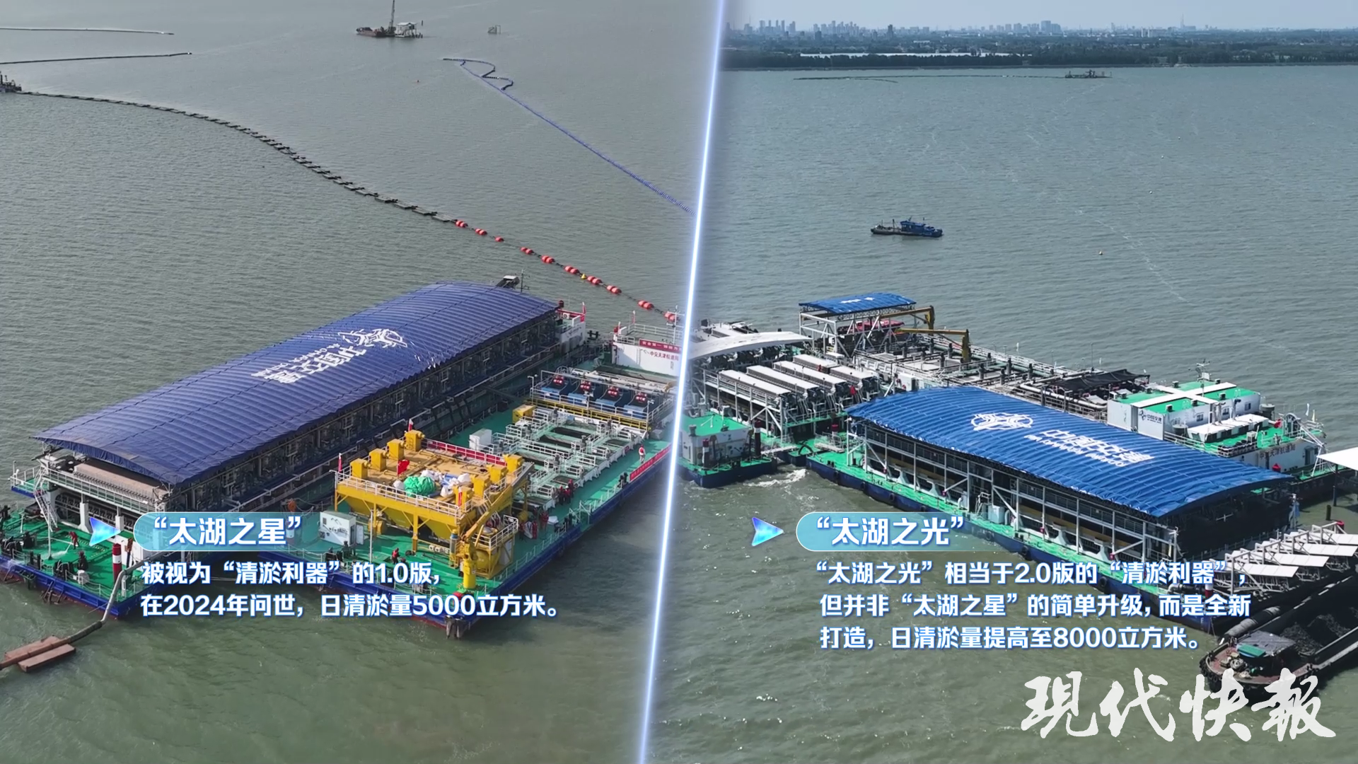 早于“太湖之光”打造的“太湖之星”,被視為“清淤利器”的1.0版,在2024年問世,日清淤量5000立方米。如今,“太湖之星”和“太湖之光”分別在太湖的無錫市區(qū)段、宜興段水域作業(yè),被稱為太湖清淤“星光”CP。這些年,王冰一路見證國產(chǎn)清淤裝備從跟跑者成為領(lǐng)跑者。王冰介紹,傳統(tǒng)的清淤船在挖出淤泥后,要運到岸邊露天堆放,自然脫水風(fēng)干。但這樣占地多、周期長、運輸難、花費也比較高,還容易影響周邊的生態(tài)環(huán)境。