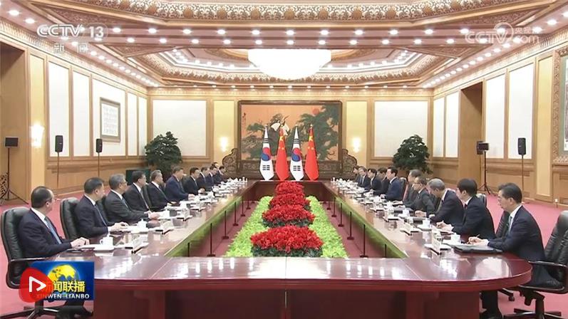 習(xí)近平指出,當(dāng)前世界百年變局加速演進,國際形勢更加變亂交織。中韓在維護地區(qū)和平、促進全球發(fā)展方面肩負重要責(zé)任,有廣泛利益交集,應(yīng)當(dāng)堅定站在歷史正確一邊,作出正確戰(zhàn)略選擇。80多年前,中韓兩國付出巨大民族犧牲,贏得抗擊日本軍國主義的勝利。今天更應(yīng)攜手捍衛(wèi)二戰(zhàn)勝利成果,守護東北亞和平穩(wěn)定。作為經(jīng)濟全球化的受益者,中韓要共同反對保護主義,踐行真正的多邊主義,為推進平等有序的世界多極化、普惠包容的經(jīng)濟全球化作出貢獻。