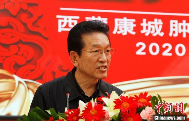 圖為西藏自治區(qū)政協(xié)副主席、自治區(qū)工商聯(lián)主席阿沛·晉源致辭?!≮w朗 攝