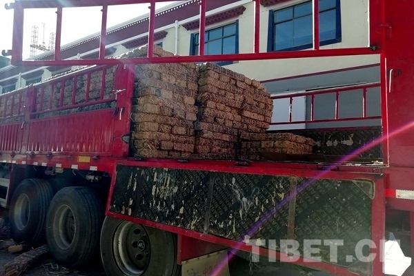 圖為健康茶昌都市配送車輛正在裝茶 石萬供圖
