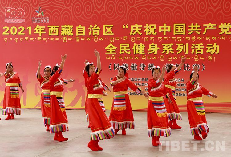 《幸福拉薩》、《民族健身牧民舞》、《康定情歌》……伴隨著一首首耳熟能詳?shù)母枨鱾€(gè)參賽隊(duì)伍開(kāi)始表演。演出不僅展現(xiàn)了西藏各族群眾積極向上的精神面貌,也充分展示了西藏全民健身活動(dòng)的豐碩成果。