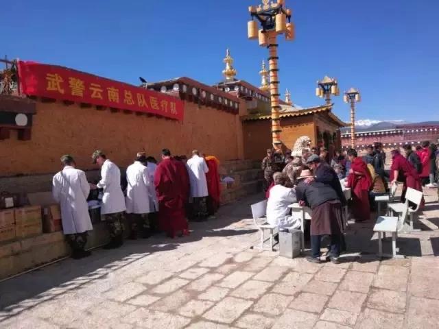 3月8日上午,以“送健康、暖人心”為主題,武警云南總隊(duì)醫(yī)院“送健康體檢進(jìn)寺院”義診活動(dòng)在香格里拉市松贊林寺舉行。