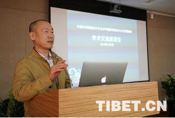 圖為青海省玉樹藏族自治州藏醫(yī)藥研究所格列嘉措副所長作《關(guān)于藏族天文歷算的學(xué)習(xí)及思考》報告。攝影:李偉 魯星杞