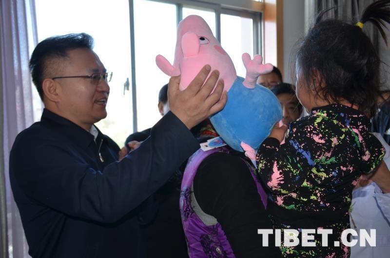 圖為醫(yī)院的愛心人士看望年僅三歲半的白內(nèi)障患者其美次仁