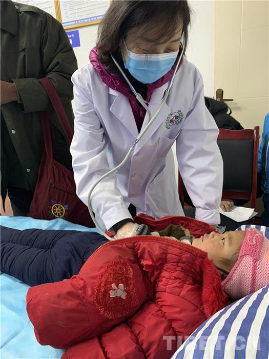 正在檢查按部就班進行時,診室內(nèi)突然迎來了一位特殊的小客人,她就是之前通過“光彩o民生銀行西藏兒童先心病救治項目”接受救治的患兒旦增卓拉。旦增卓拉的家長聽說工作組來到了類烏齊縣,特意帶著孩子來請專家復查,并且想當面對工作組表示感謝。