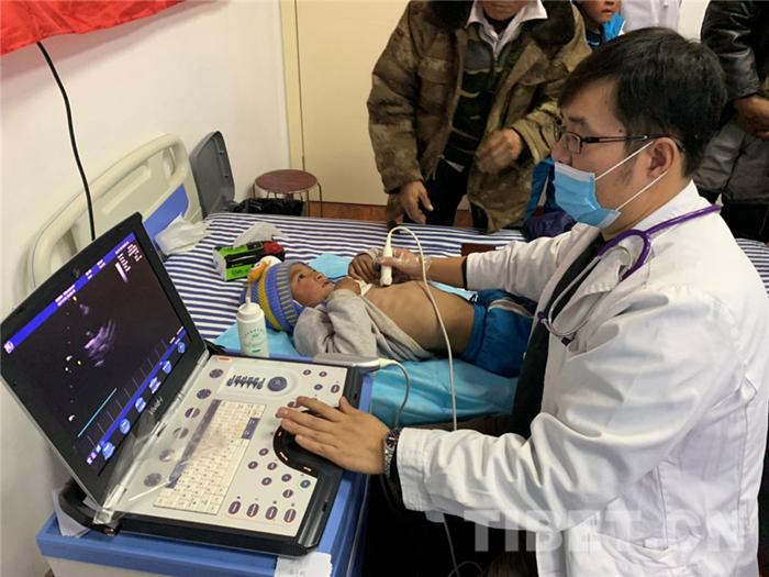 在丁青縣人民醫(yī)院,只用兩臺儀器便承擔起聽診任務(wù)的安貞醫(yī)院小兒心臟外科副主任醫(yī)師劉承虎,正安撫在家長懷里哭泣不止、僅有2歲多的益西貢培。小家伙兒似乎有些恐懼即將面臨的一切,而他的家長也有些手足無措,臉上寫滿了歉意。劉承虎并沒有介意,他和藹地安撫哭泣的孩子,保持著高度的耐心,等孩子平靜下來,再為他進行聽診,力求讓孩子保持平靜,確保結(jié)果準確。“這個孩子心跳聽起來不太正常,快讓他去接受檢查吧?!本瓦@樣,又一名患兒得到了救治的機會。“還有沒聽診的孩子么?”劉承虎向邊上的工作人員確認已經(jīng)沒有等待聽診的孩子后,起身來到病房外確認沒有了等候的孩子,便立刻進入超聲檢查室,拿起紙筆,開始幫助同伴進行患兒病情的記錄。每當有人讓他去休息時,他總是說“沒事,我們是專業(yè)的,記錄得更清楚?!蓖徽揪鸵镜綑z查結(jié)束,但他從未有過一句怨言。
