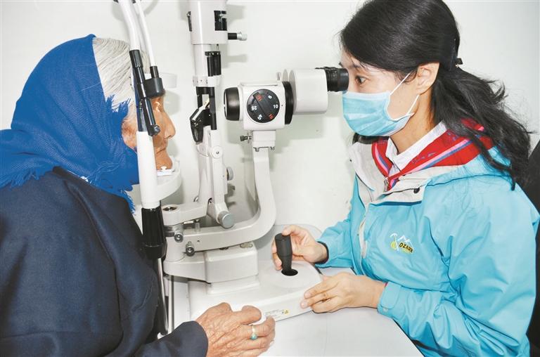 自2016年以來(lái),北京市共選派援藏醫(yī)療隊(duì)員97人為西藏拉薩各級(jí)醫(yī)院提升軟硬件設(shè)施和診療水平,使廣大患者受益。圖為北京醫(yī)學(xué)專(zhuān)家在拉薩市當(dāng)雄縣開(kāi)展白內(nèi)障篩查。孫靖宇 攝