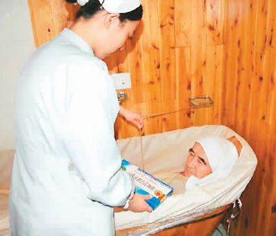 中國藏學研究中心北京藏醫(yī)院,一位患者正在接受藏醫(yī)藥浴法治療。孫文敏攝
