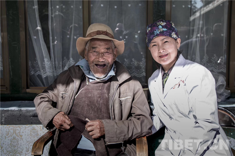 圖為援藏醫(yī)生李毅萍與老黨員索朗平措 攝影:胡德