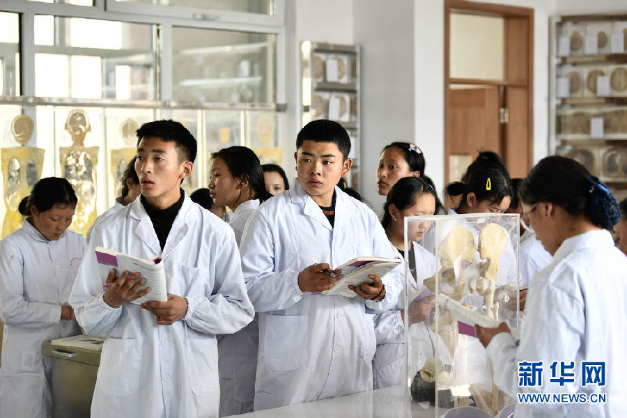 3月16日,在果洛藏族自治州職業(yè)技術(shù)學(xué)校,2020級(jí)護(hù)理專業(yè)學(xué)生在上課。新華社記者 張龍 攝