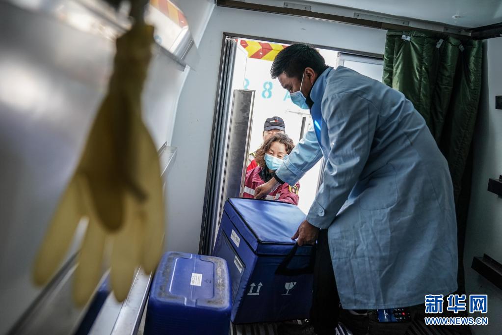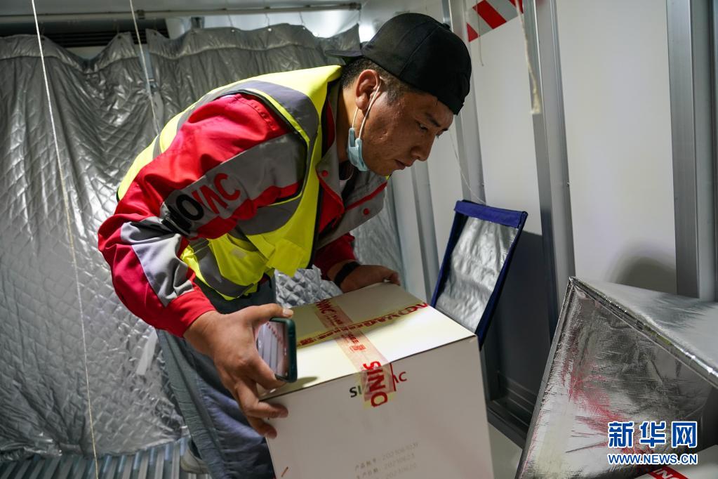 7月22日,在四川甘孜州疾控中心,工作人員將疫苗搬入當(dāng)?shù)氐睦滏溰?chē)。新華社記者 彭子洋 攝